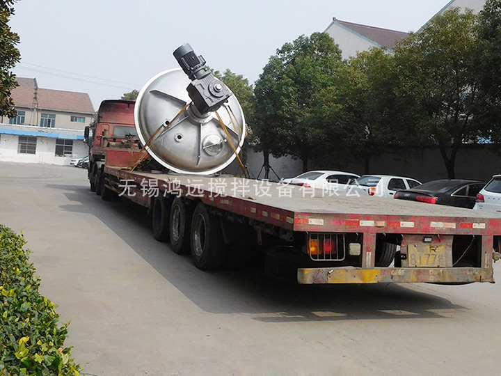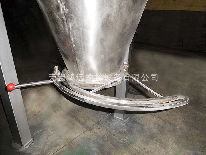 螺帶式混合機,由單級減速機(無級變速)、傳動部分、筒蓋、筒體、內螺旋、外螺帶、出料閥等部件組成。