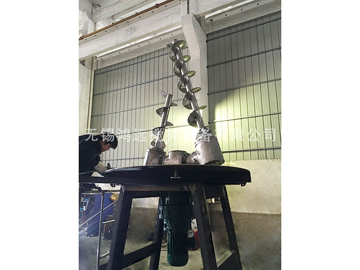 3、螺旋部分:筒體內兩只非對稱排列的螺旋作自、公轉行星運動時,在較大范圍翻動物料,使物料快速達到均勻混合。