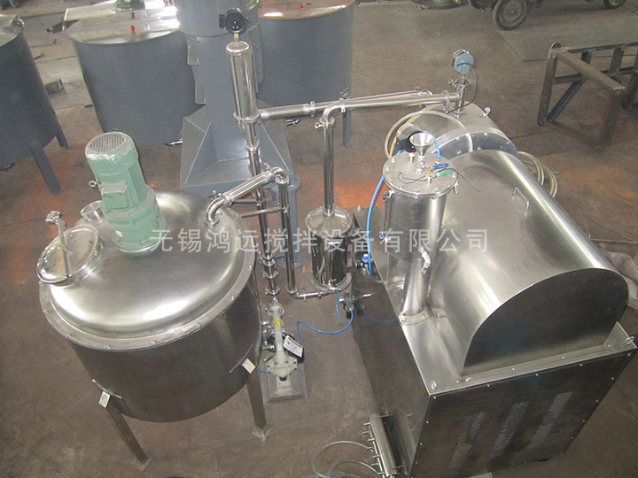 加料泵將預分散的材料送人研磨桶,研磨筒內裝有研磨介質,磨細后的物料經動態分離器排出,視產品細度不同,可采用單臺連續或多臺串聯連續研磨工藝。