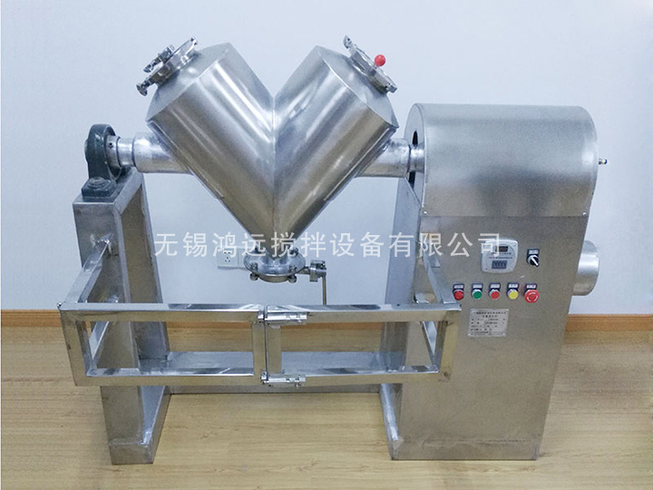 V型混合機(jī)是較為通用的粉末、顆粒狀物料混合機(jī)。它具有結(jié)構(gòu)簡(jiǎn)單,容易操作,維護(hù)清洗方便,速度快,混合效果佳等特點(diǎn)。