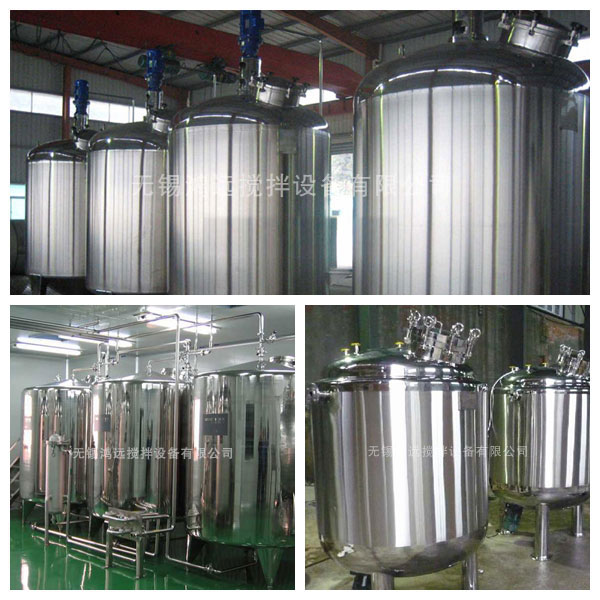 衛生級不銹鋼攪拌罐設備分缸體、缸蓋、進料口、出料口,均由進口不銹耐酸鋼304或316制成,罐體采用立式或臥式單層或雙層結構,并根據用戶要求充填保溫材料,按GMP技術條件進行,缸體內拋光,外部采用鏡面板或磨砂板保溫。頂部開設進水口、回流口、消毒口、清洗口、人孔并安裝空氣呼吸器, 且可與管道連接,便于連續進各種配料,缸底為錐度,出料口便于放料。
